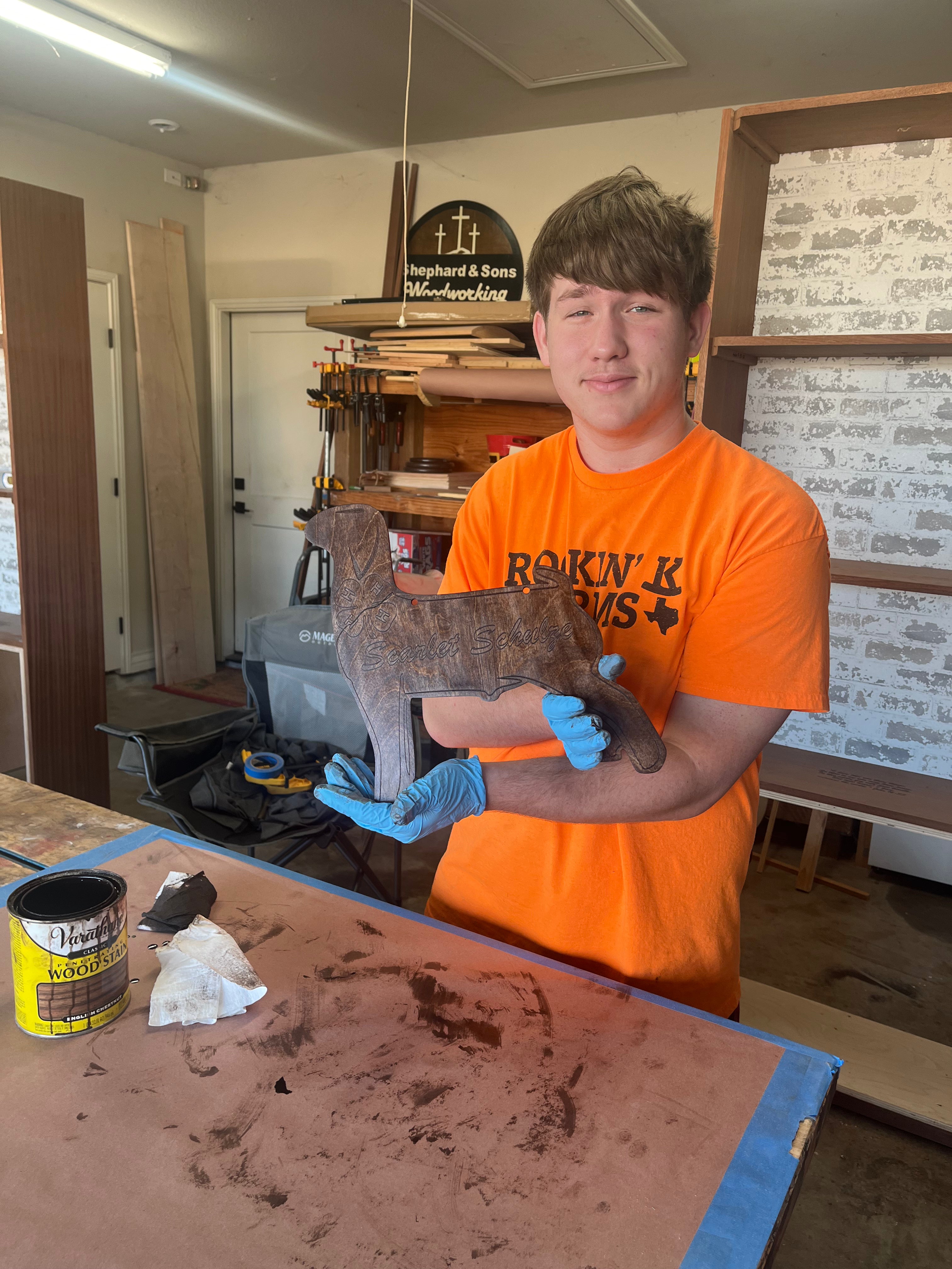 Shephard and Sons Woodworking is a family-owned business proudly run by Aaron Sr. and Adrienne Shephard alongside our two sons, Aaron Jr. and Jacob. We are both Army veterans who turned a shared passion for craftsmanship into a growing family venture built on hard work, creativity, and faith. Aaron Sr. leads the woodworking side, hand-crafting each piece with care, while Adrienne manages engraving and the business operations behind the scenes. Our boys discovered their love for woodworking at a young age working with their dad and continued to develop their skills through 4-H and livestock shows. We are deeply grateful for the support that has allowed our small business to grow and evolve. Our dream is to continue creating meaningful handmade pieces and custom builds while serving as your local go-to for thoughtful, one-of-a-kind gifts — truly blessed to turn a passion into something we can share with our community.